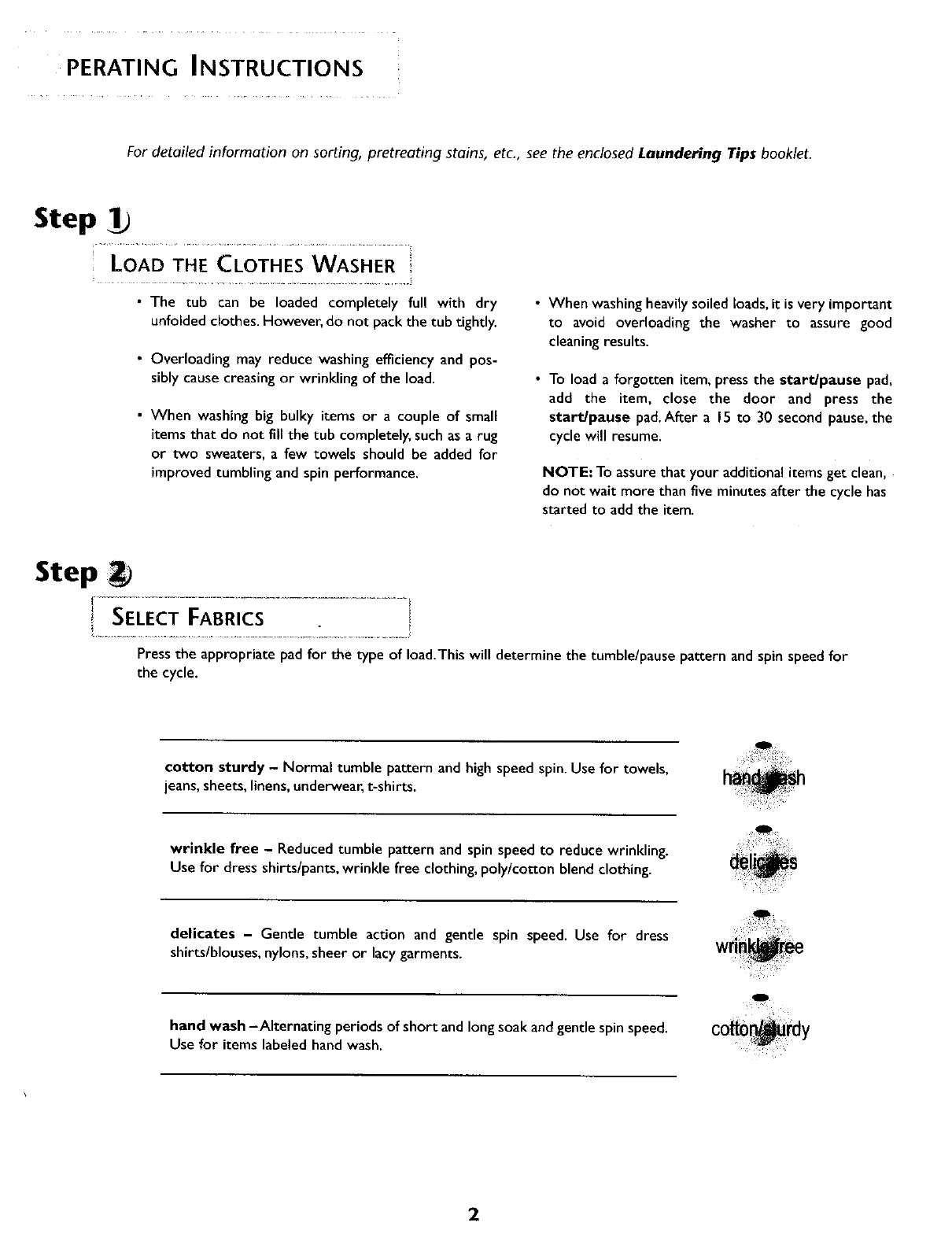 enclosed Laundering Tips booklet for more information on treating specific stains.