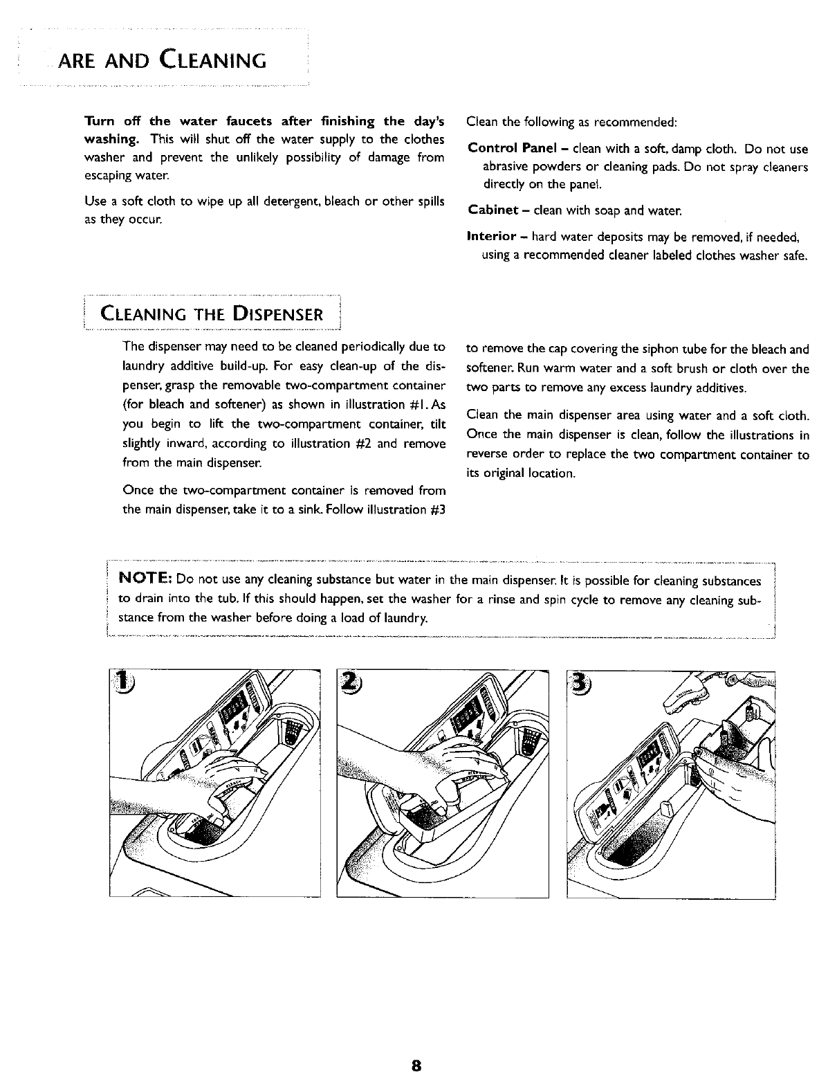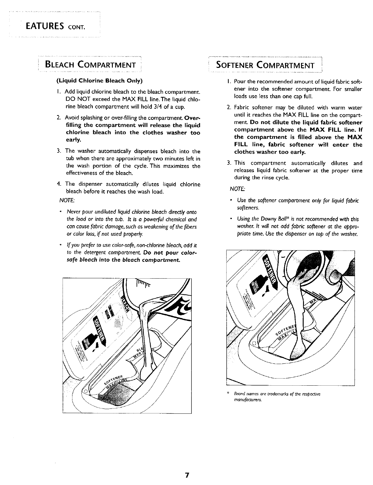 cup of chlorine bleach in the bleach dispenser.The bleach will be dispensed in the final minutes of the wash providing for