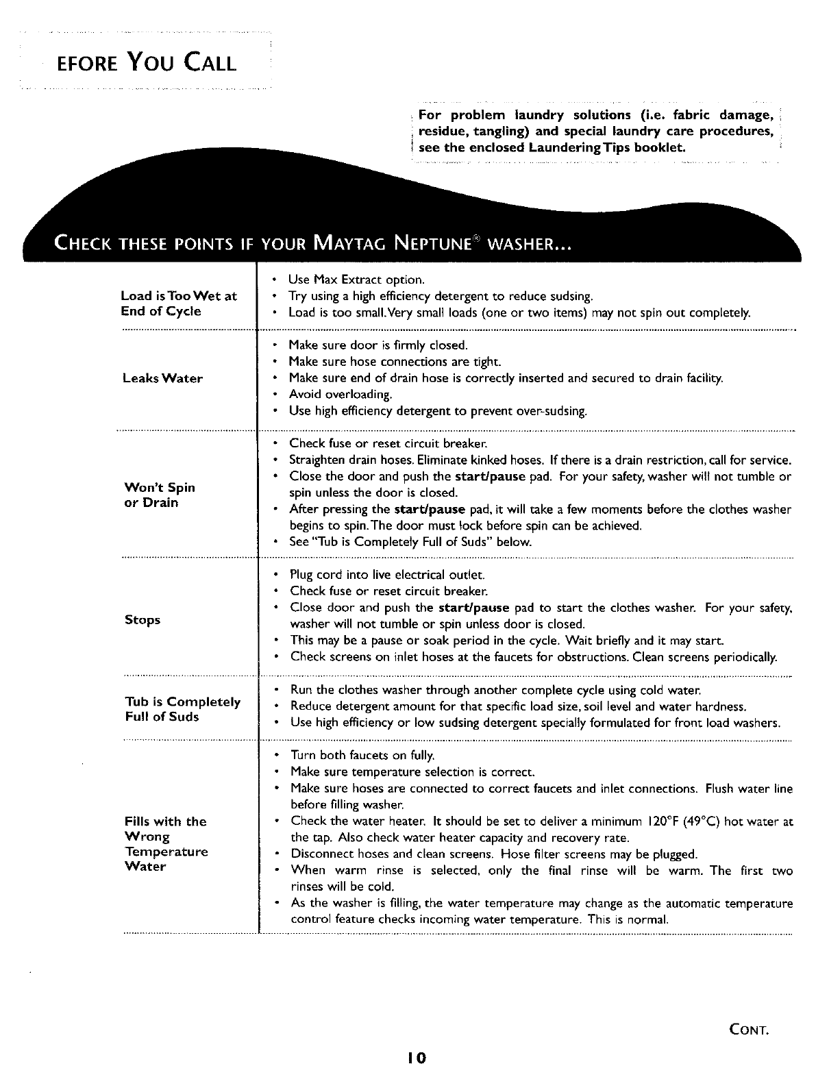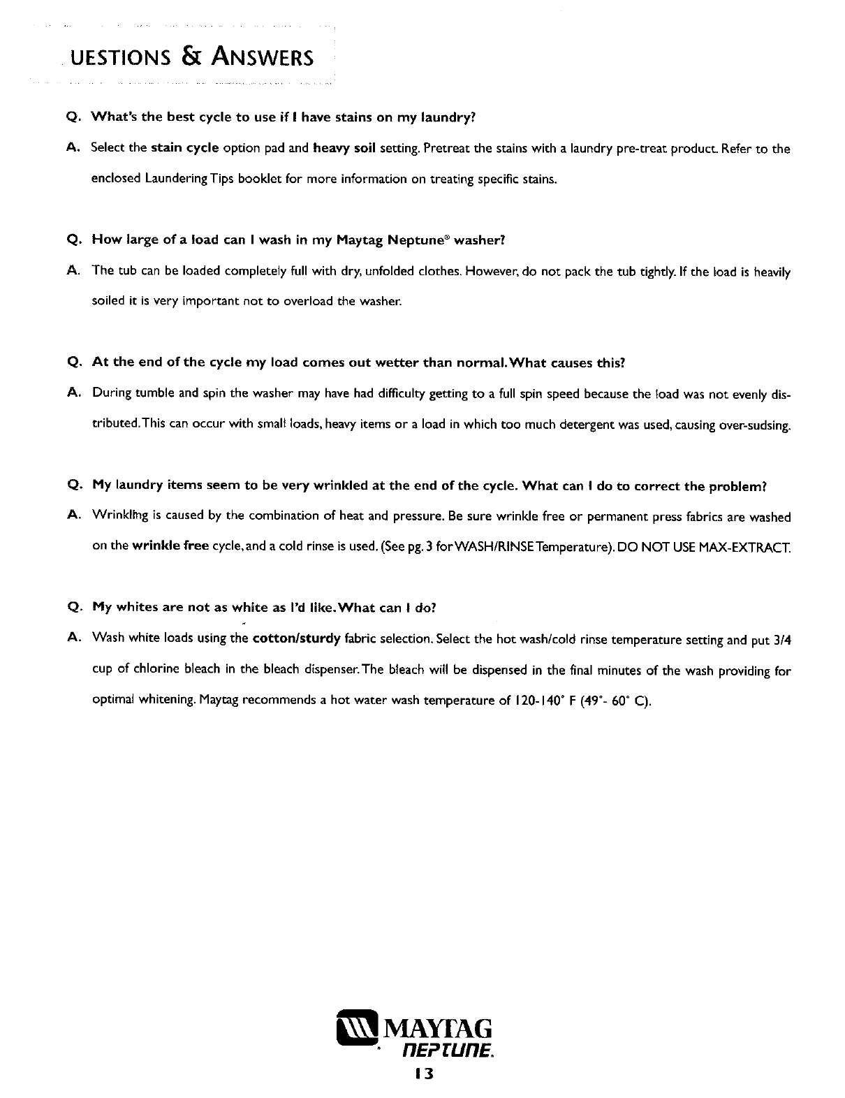 optimal whitening. Maytag recommends a hot water wash temperature of 120-140 °F(49 °- 60°C).