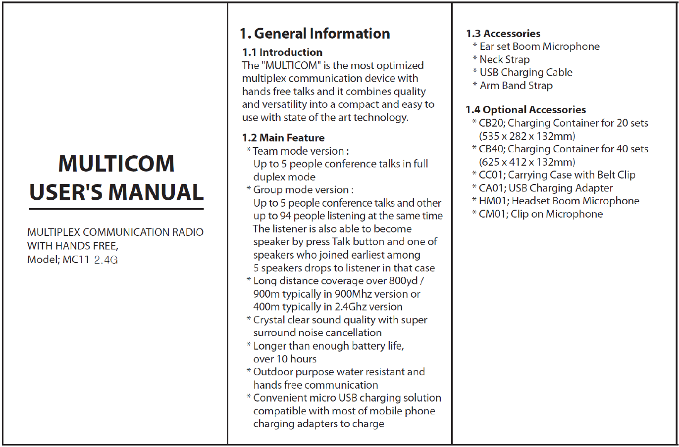 Maytel Co., Ltd Multicom 2.4G (SWATCOM Multicom) MC11 2 4G Use rmanual