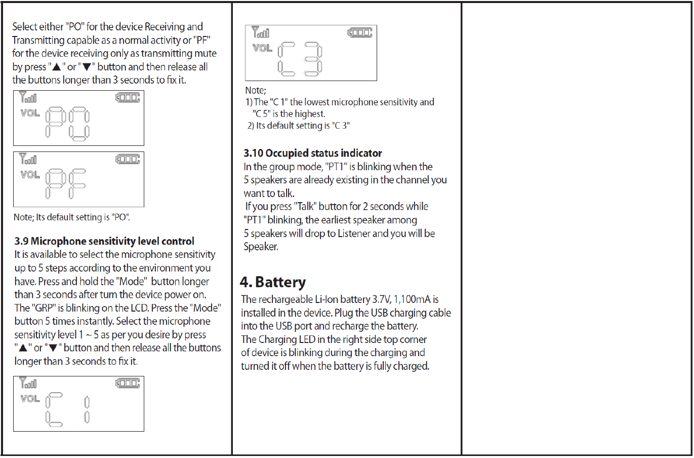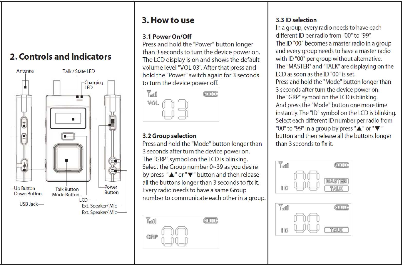 LED Display Status, Talk, Charging LED