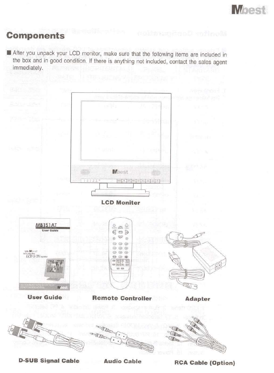 Mbestek Inc. TFT LCD Monitor W/TV Tuner QRHMB151AT manual