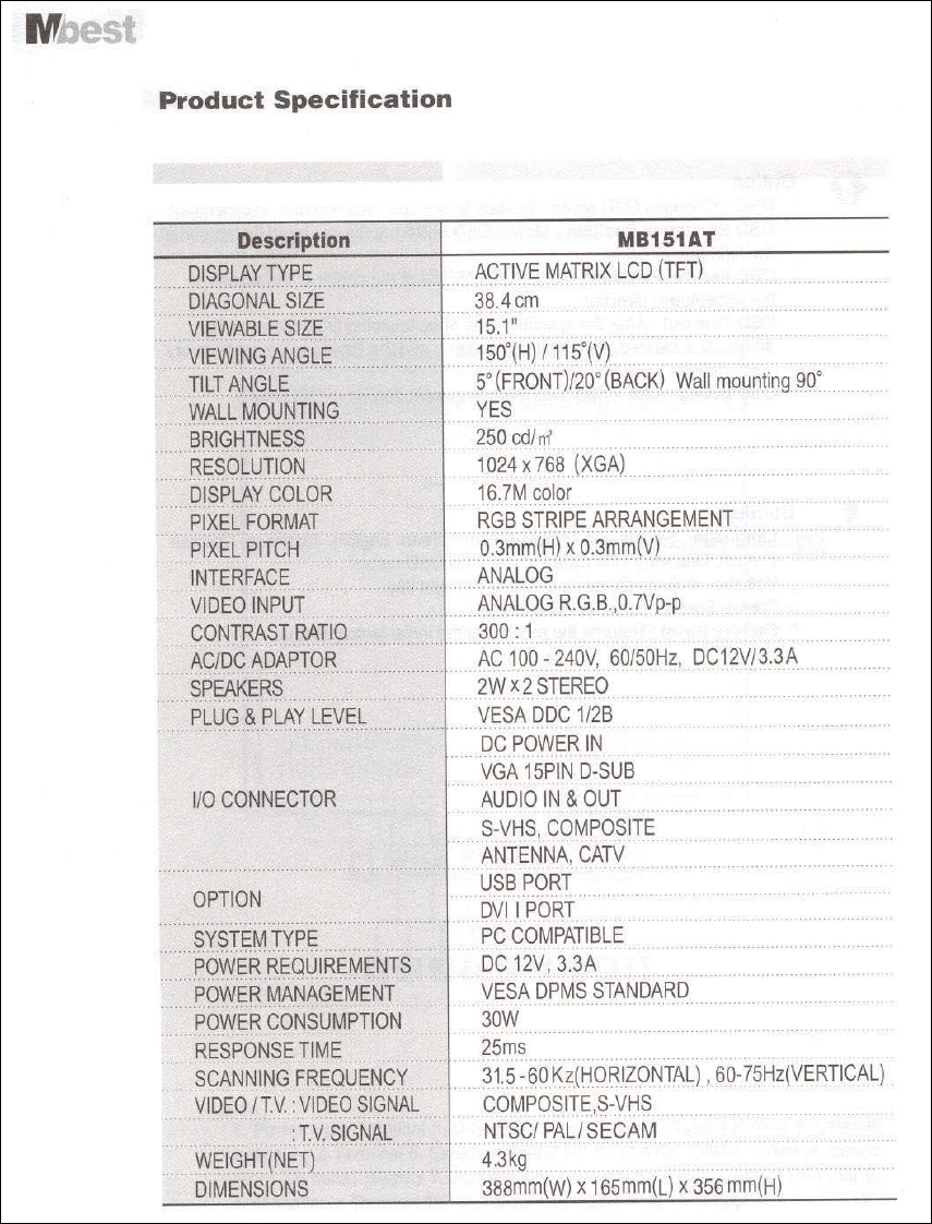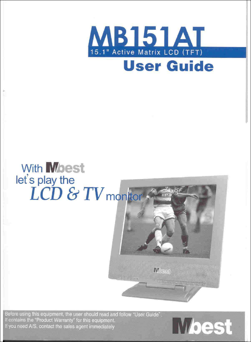Mbestek Inc. TFT LCD Monitor W/TV Tuner QRHMB151AT manual
