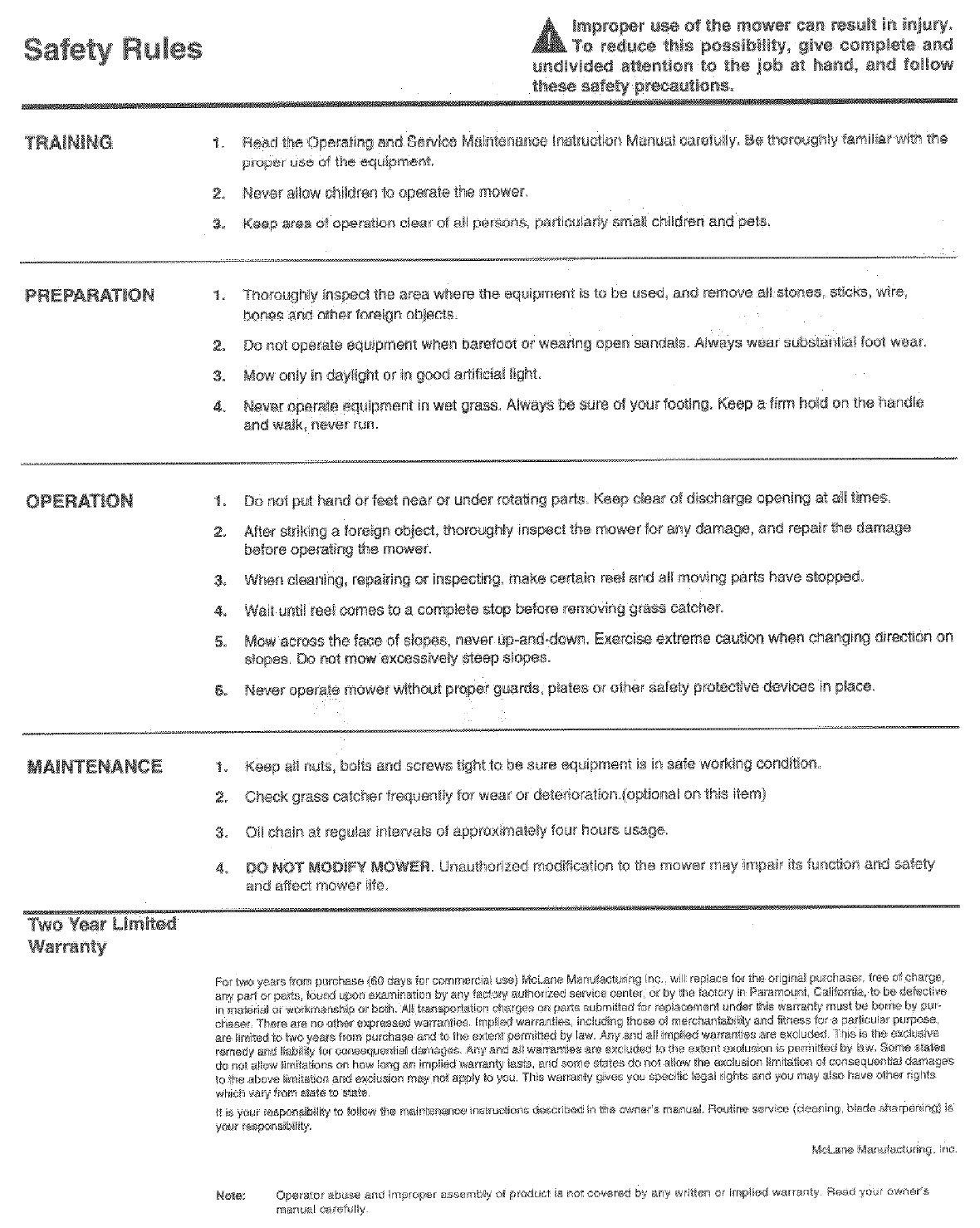 Mcclane 17 PH 5 User Manual REEL MOWER Manuals And Guides L0402313