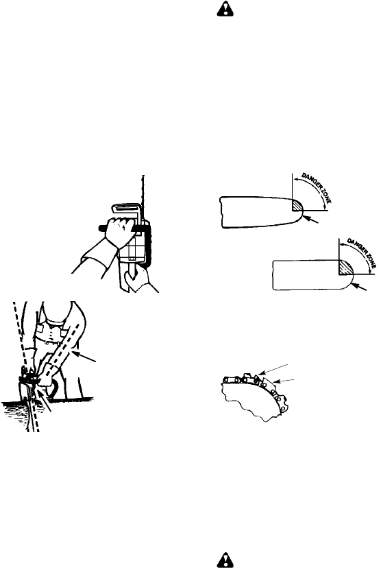 should be avoided; tip contact may cause the guide bar to