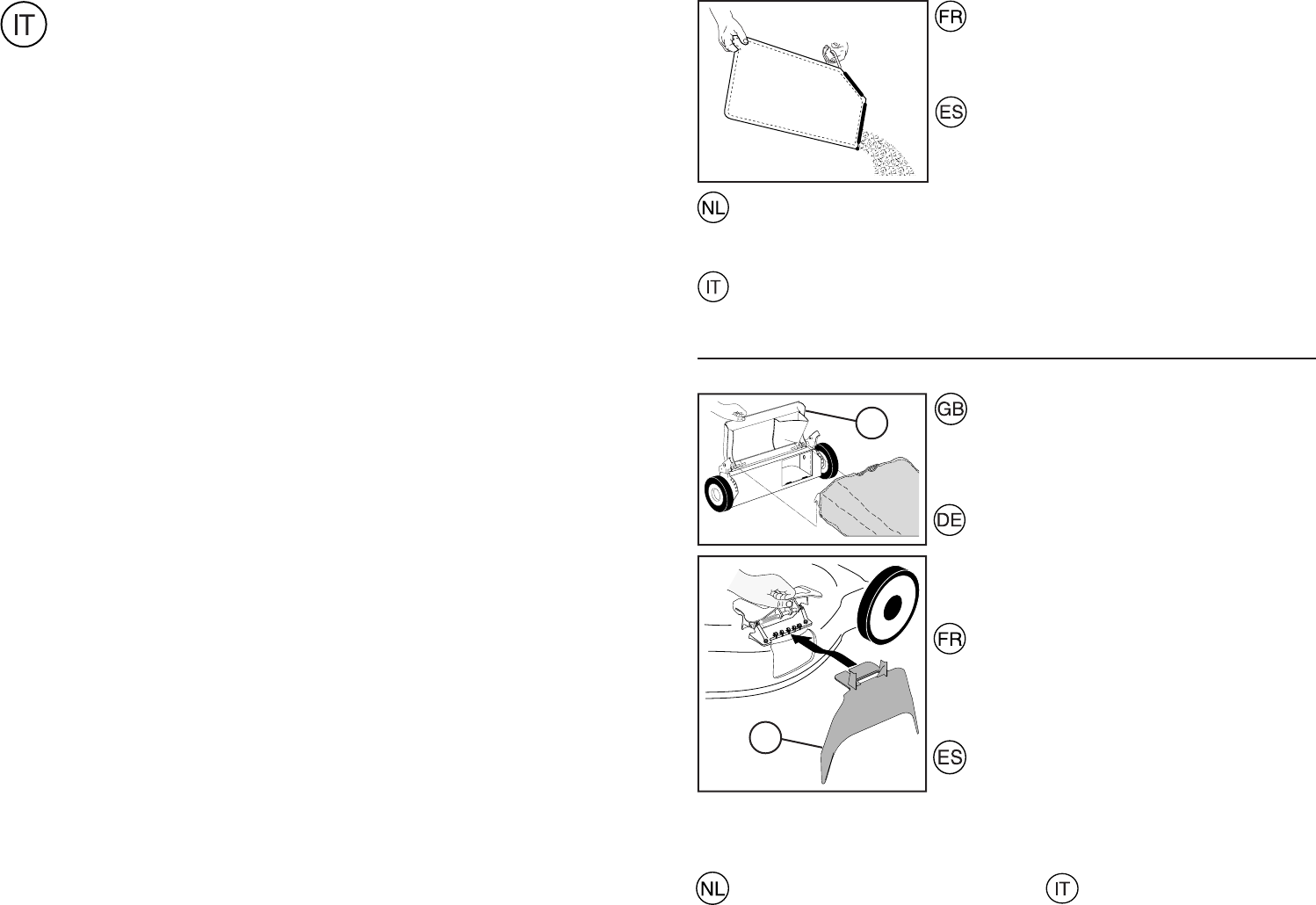 • Put grass catcher frame into grass bag with stiff part of bag