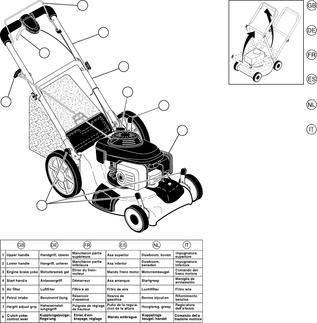 • The grass catcher is secured to the lawn mower housing when