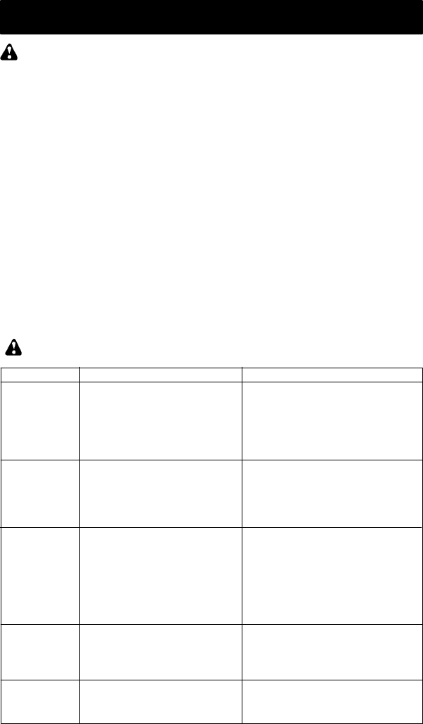 TROUBLESHOOTING TABLE