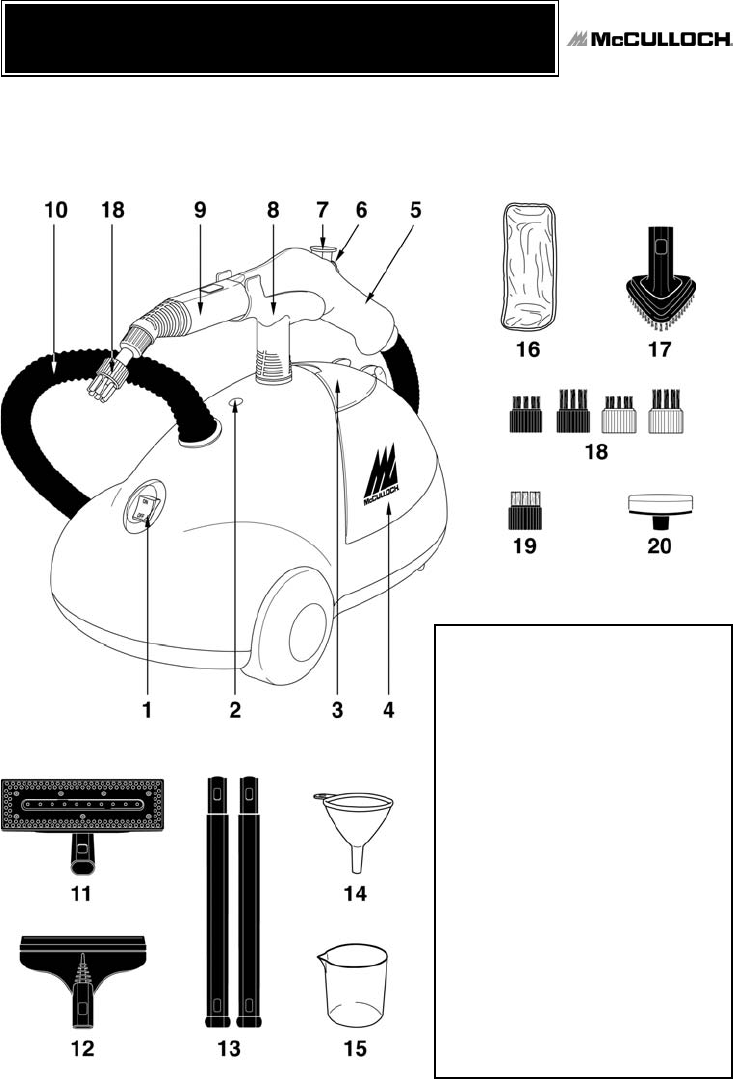 The following features and accessories are included with your Heavy-Duty Steam Cleaner.