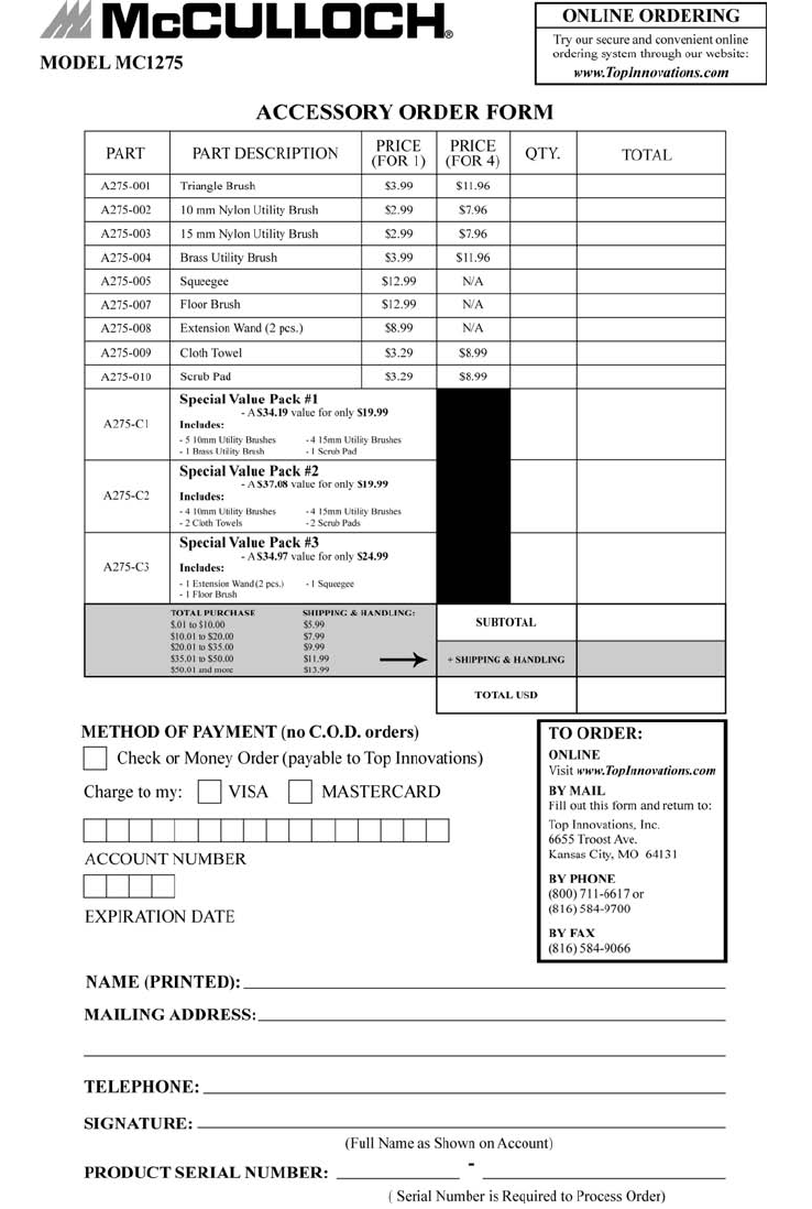 customerservice@topinnovations.com, or phone (800) 711-6617 or (816) 584-9700, ext 130 or 131.