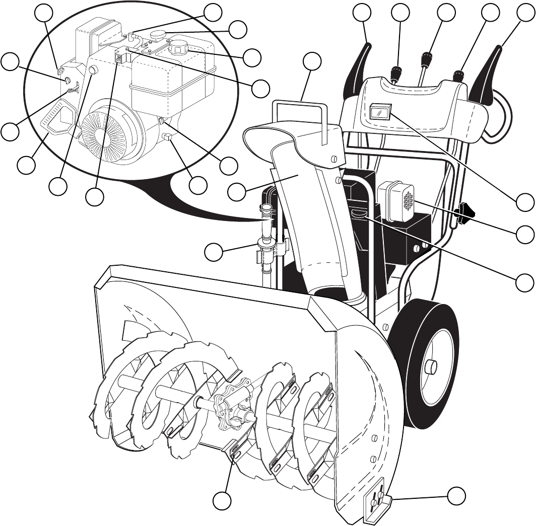 de la neige 4. Les vis sans fin / roue à aube sont bloquées. 4. Enlevez les débris ou corps étrangers des vis sans fin / roue à aube.