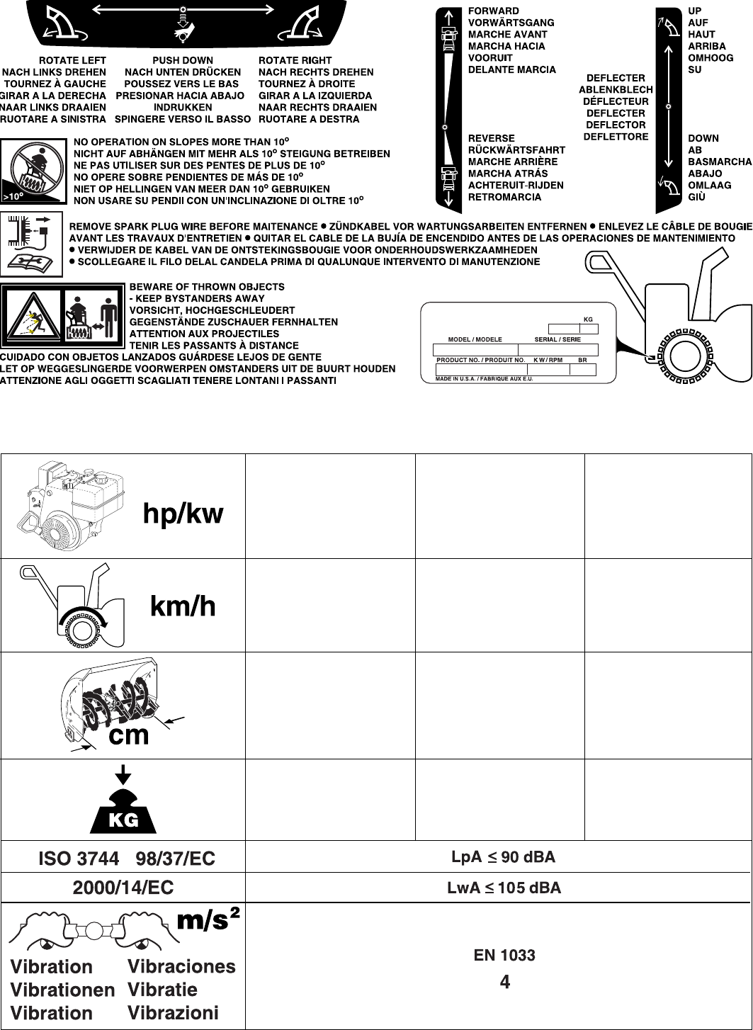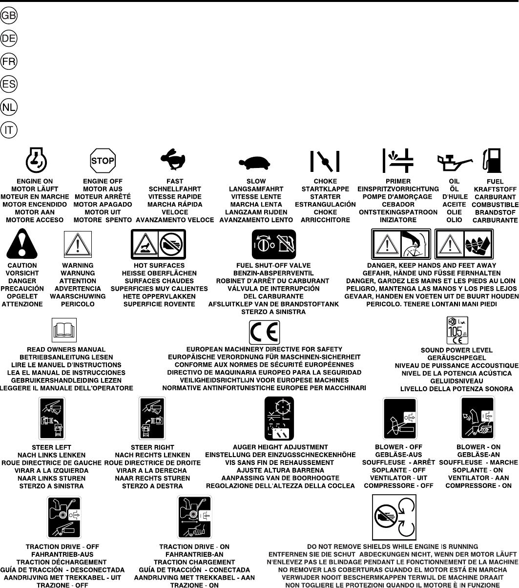 Mcculloch Pm105 Users Manual OM, McCulloch, PM55, PM85, PM105, 96191000901, 2007 02, Snow Thrower, EN, DE, FR, ES, NL, IT