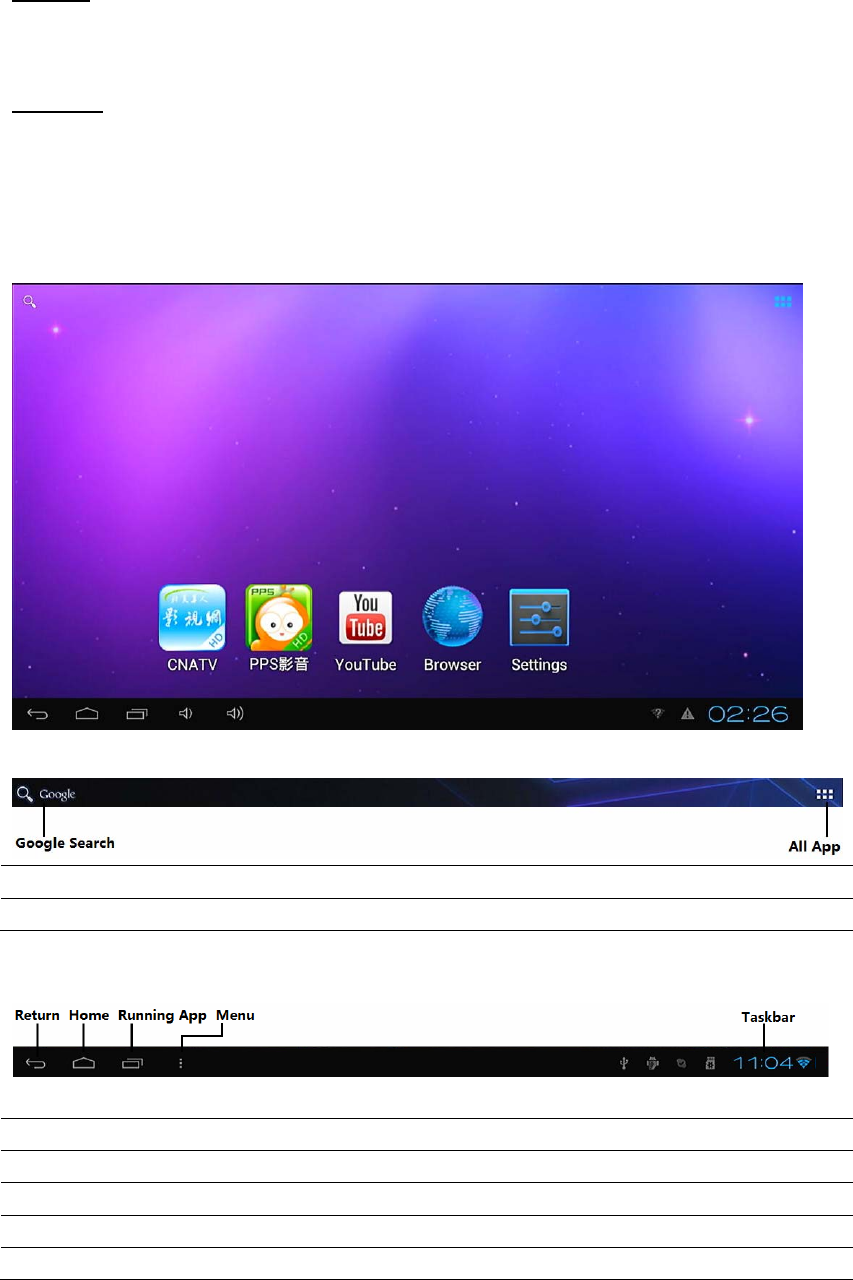 Taskbar Show time, network connection, USB device status and notifications.