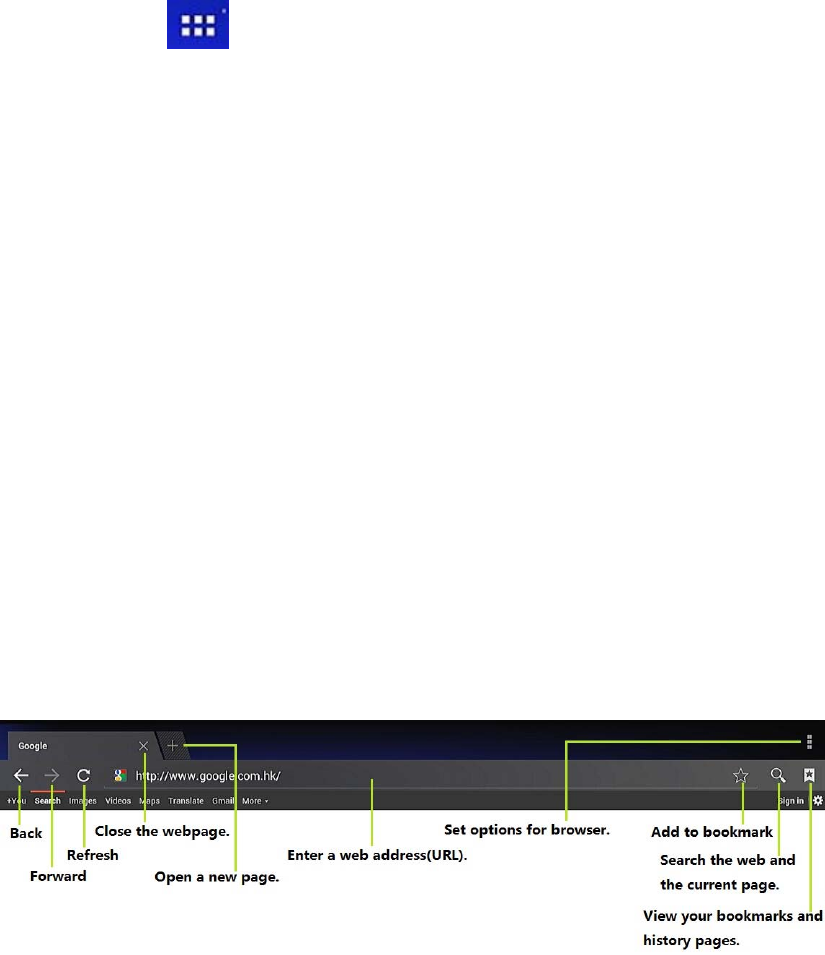Click the app icon at the upper right corner of the Home screen to view all applications.