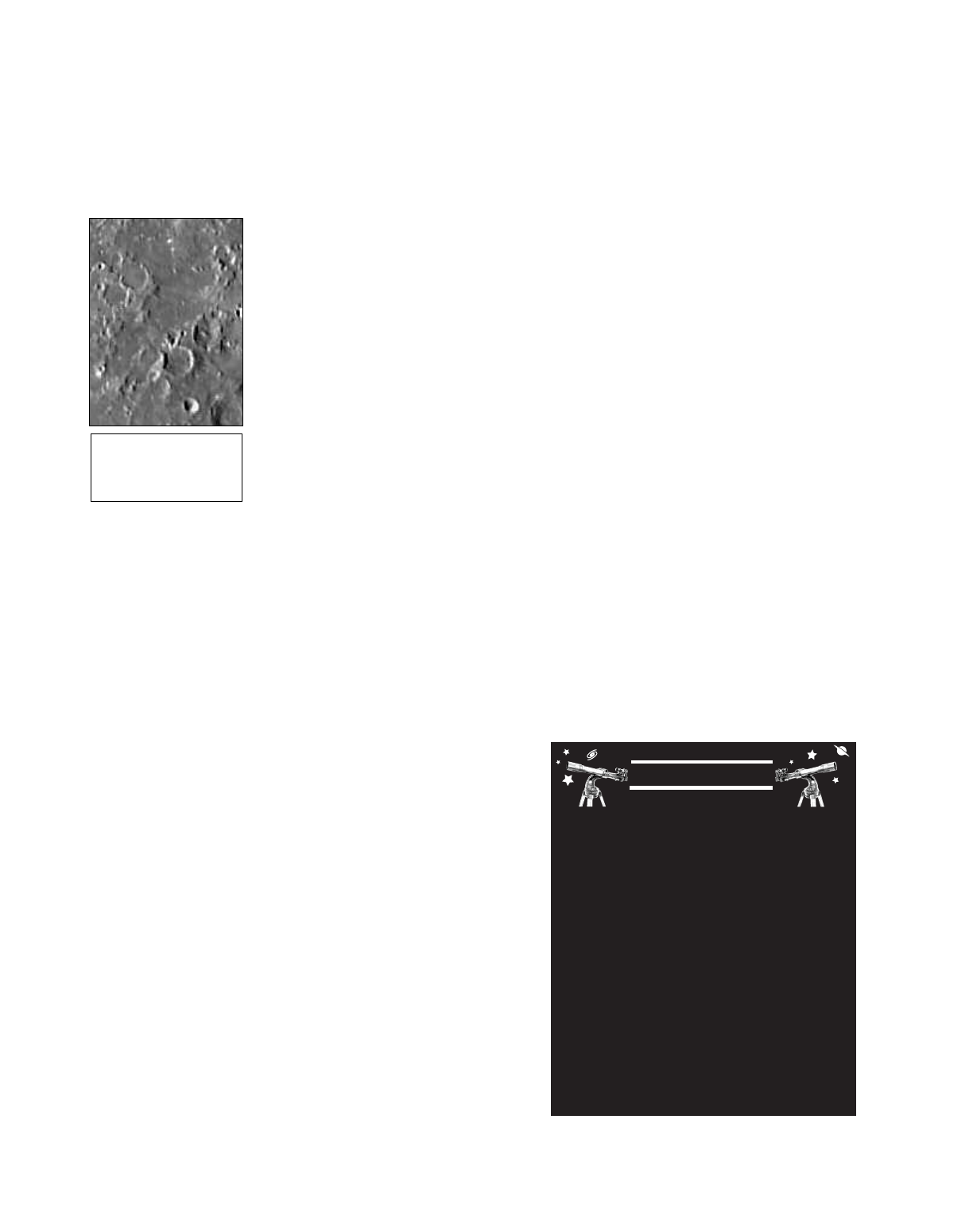 Craters are round meteor impact sites covering most of the Moon’s surface. With no atmos-