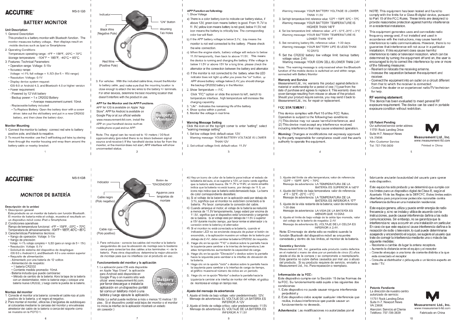 Measurement MS-51 Bluetooth Battery Monitor User Manual Manual
