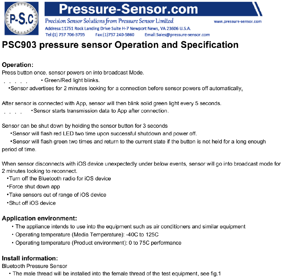 Measurement PSC903 Bluetooth Pressure Sensor User Manual