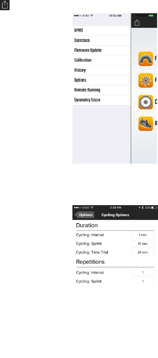 Step 3. Tap Cycling to set Cycling options for Interval, Sprint, Time Trial Durations and Interval & Sprint