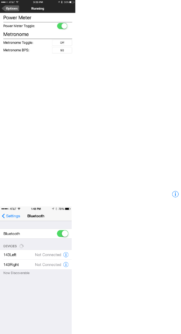 Step 4. Tap Running to toggle Running Power Meter, Metronome off/on and to choose running Cadence.
