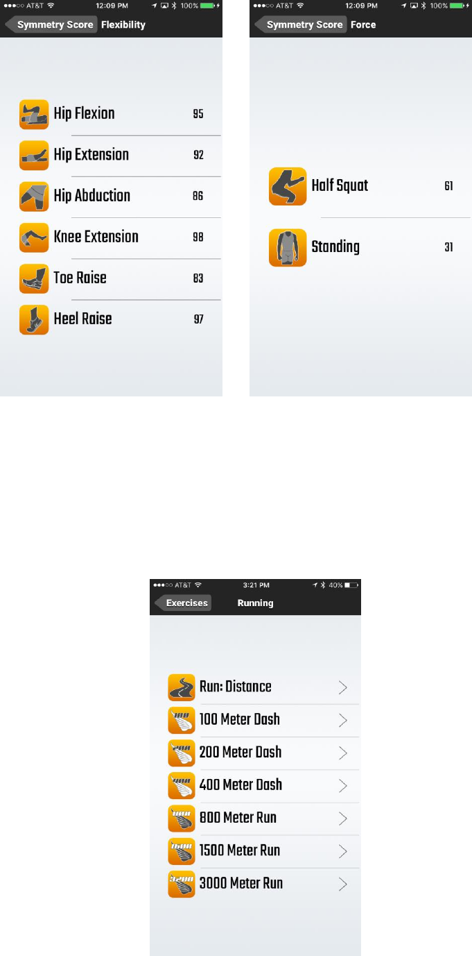 Step 3. Tap on Flexibility or Force to review Total Symmetry of each Flexibility & Force Distribution exercise.