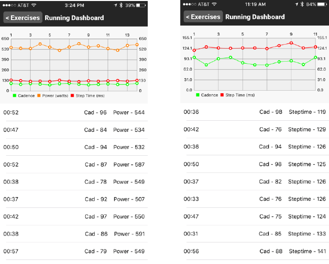 you will initially see three data sets (Cadence, Power (watts), and Step Time). If the Power Meter is Toggled