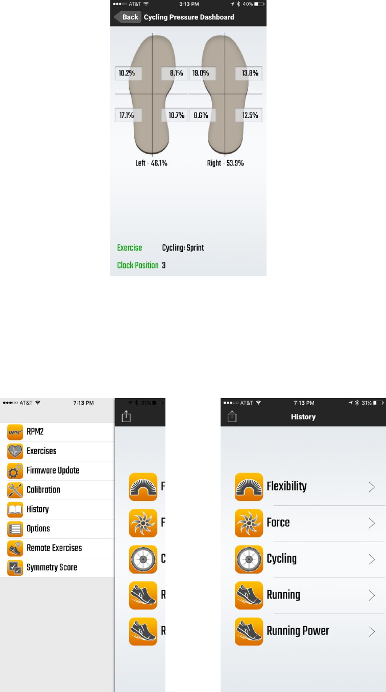 back bottom on the top left of the RPM2 screen and tap the History button and then tap on either Flexibility,