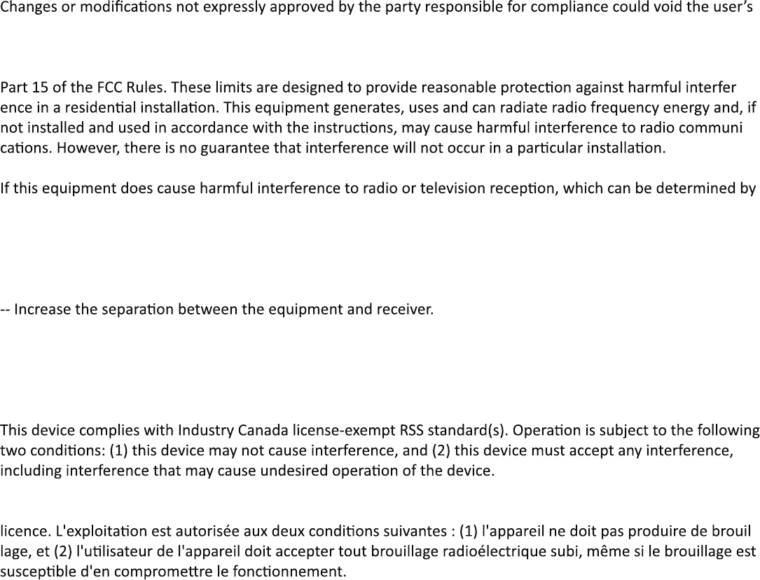 This device complies with Part 15 of the FCC Rules. Operaon is subject to the following two condions: