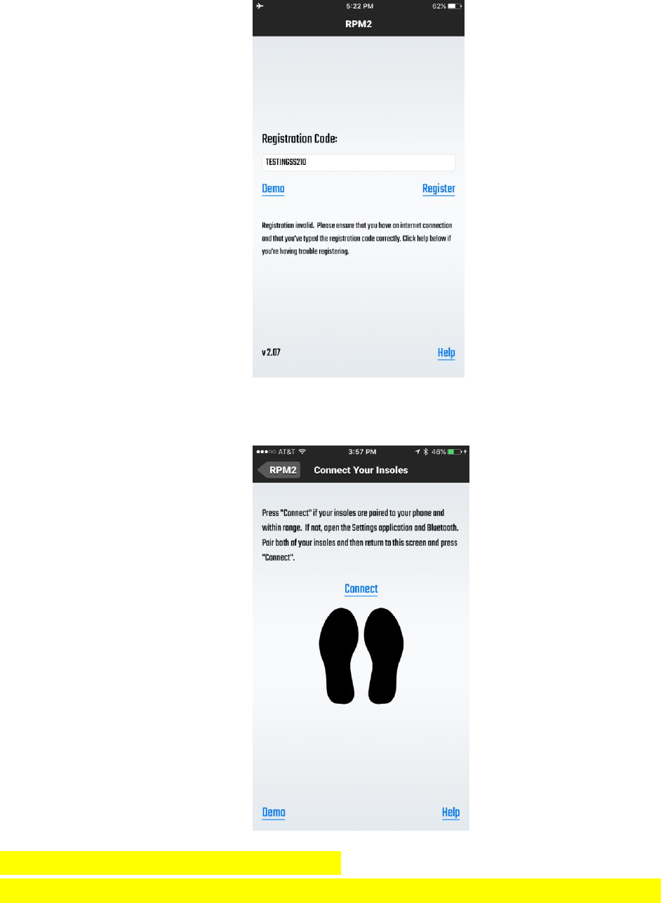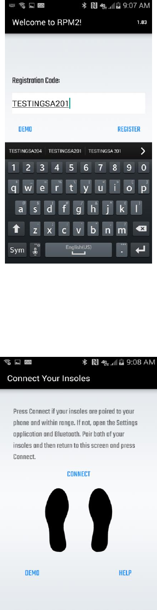 Registration Code area, or under the black feet icons on the Connect Your Insoles screen. Once clicked, you