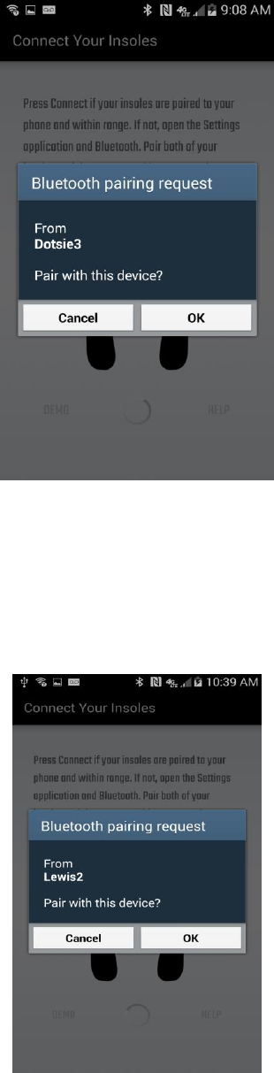 Step 6. A second pairing request will appear on the screen for the second insole. Tap ok.