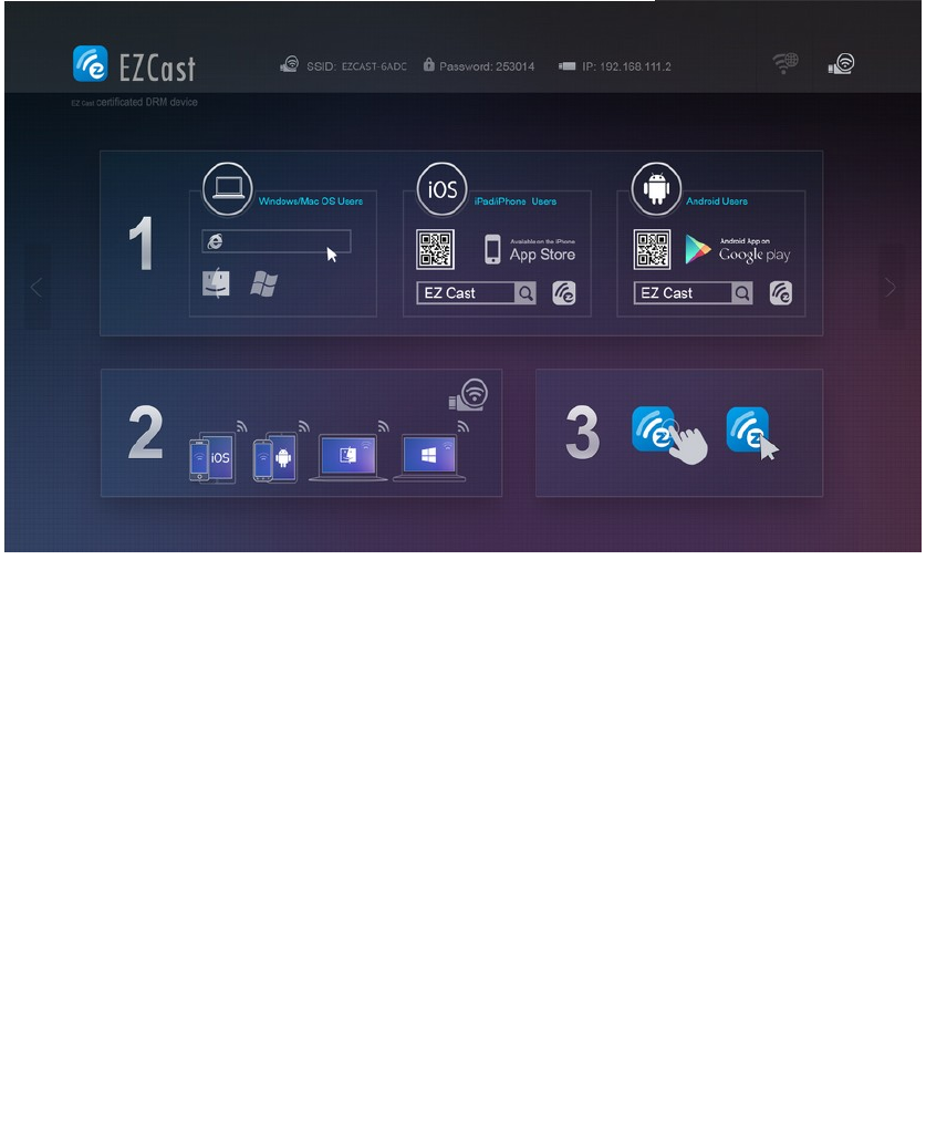Starting of the EZCast and the function instructions