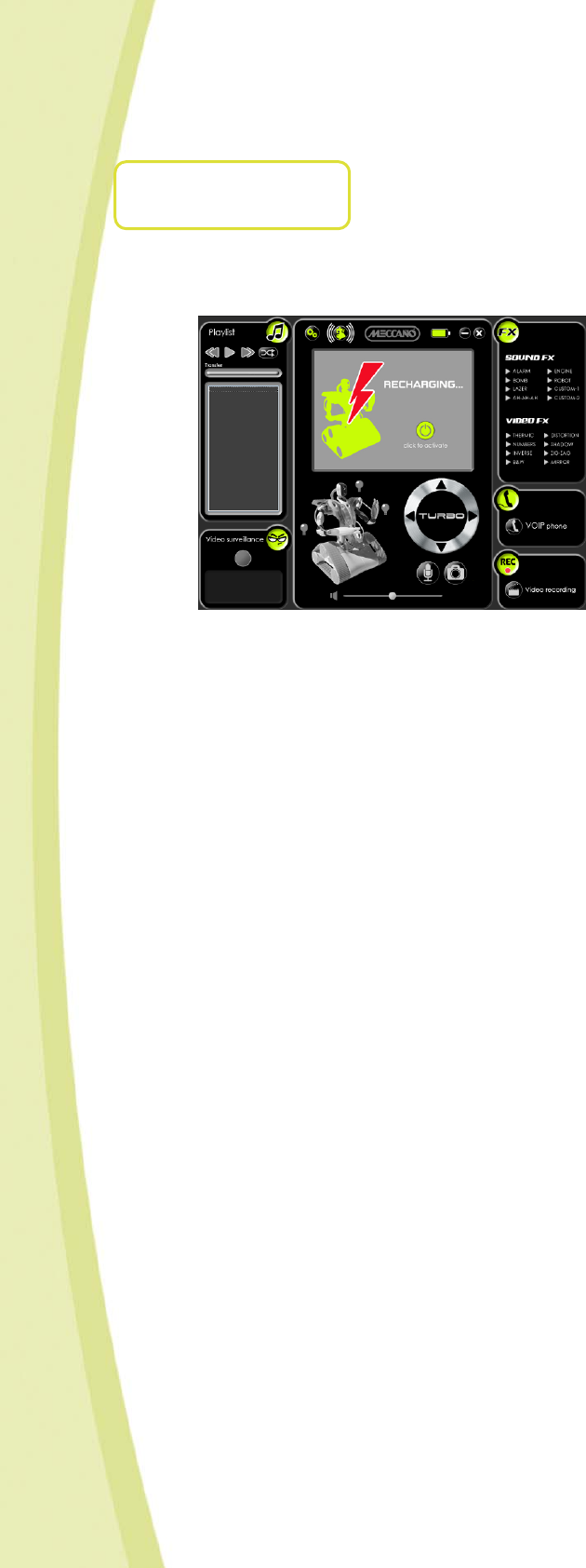• Warning! While recharging, all Spykee functions are deactivated.