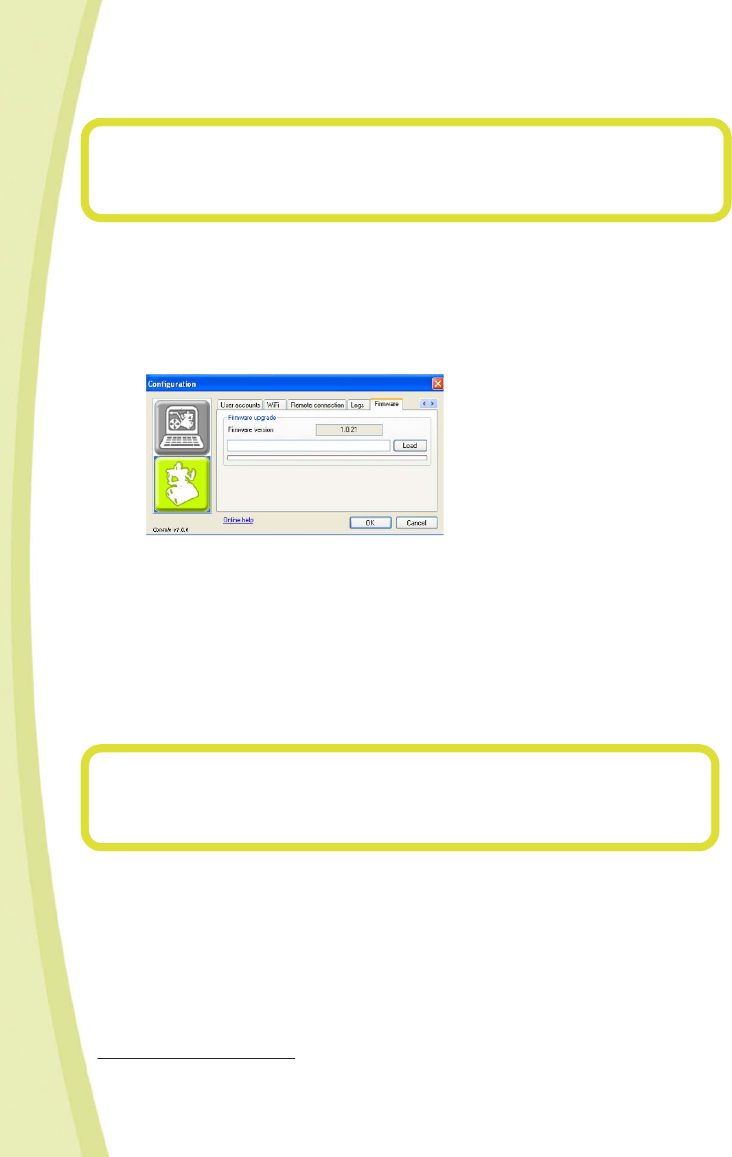 • To install this update, click on the "Configuration" icon of your Spykee console, then select the "Firmware" tab