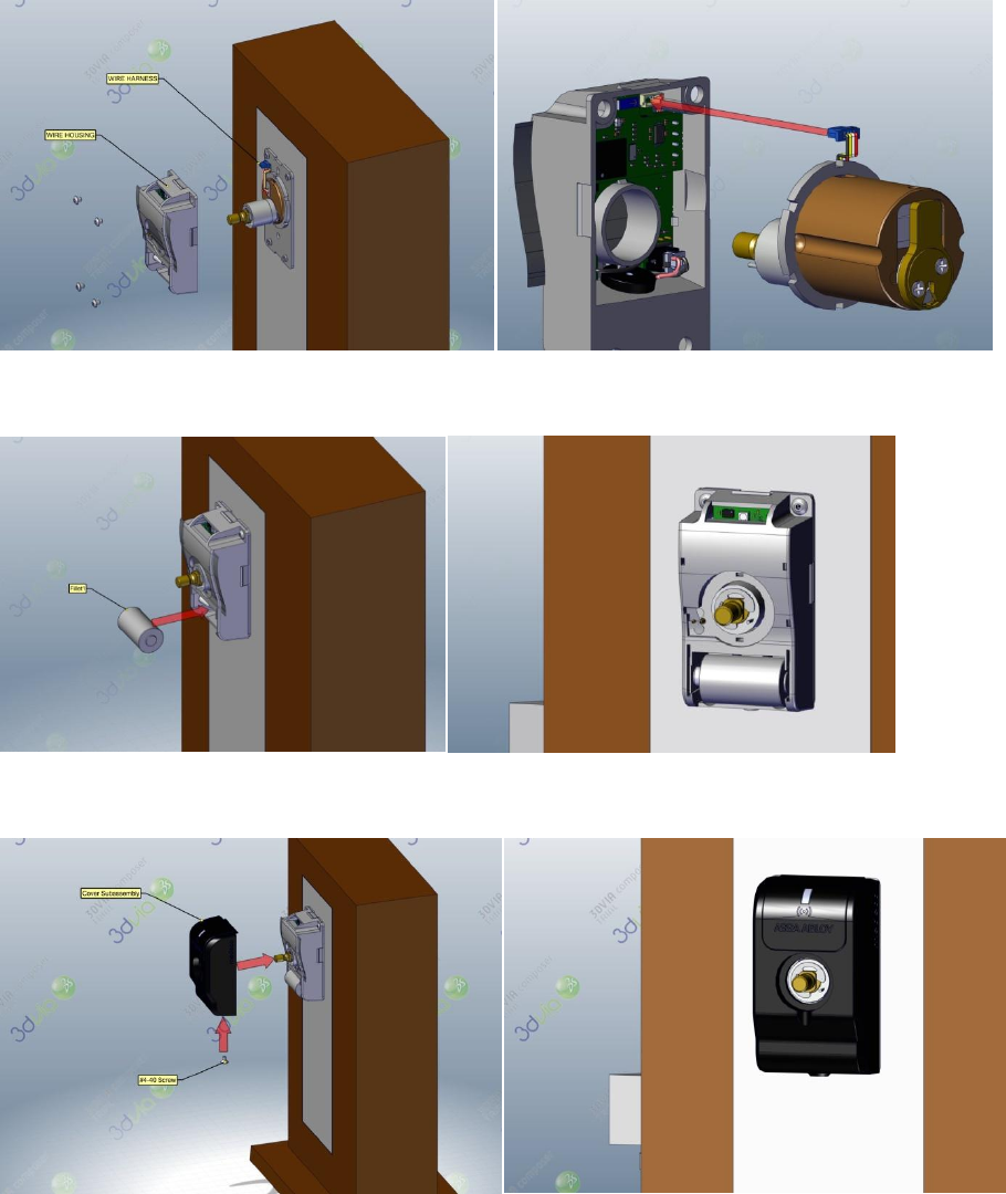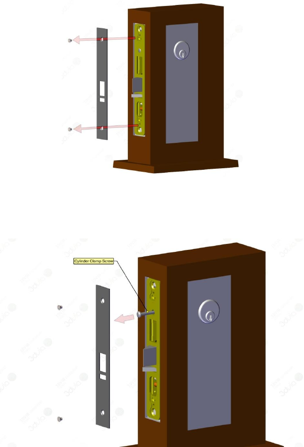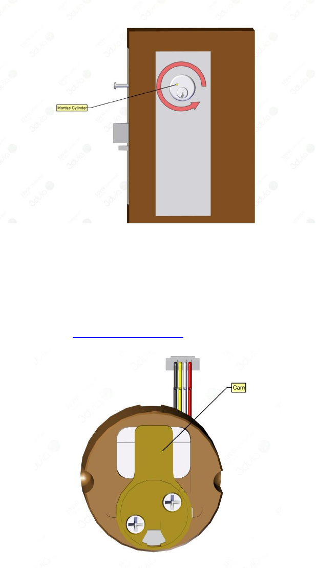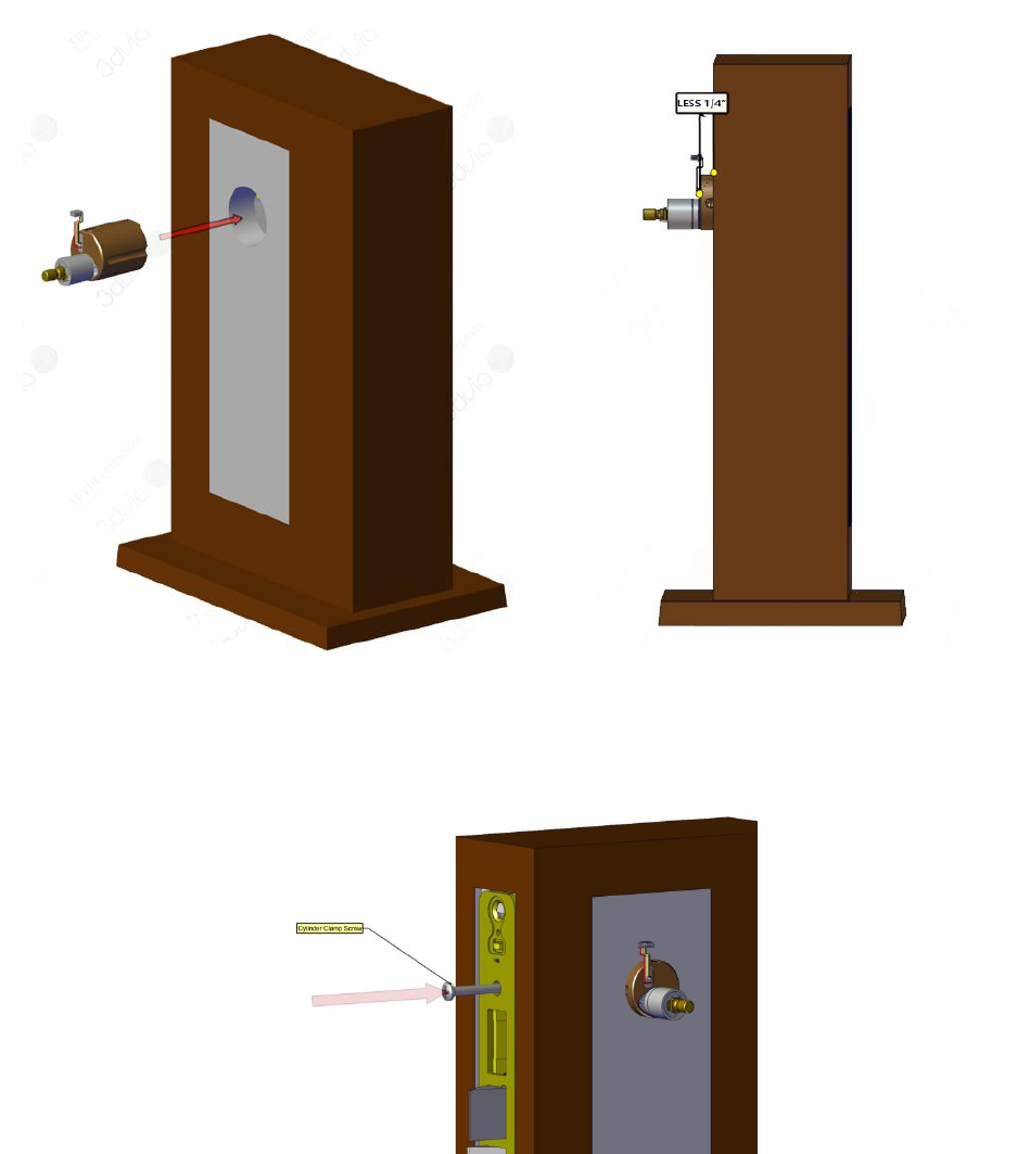 Screw the M100 into the cylinder mounting hole on the mortise hardware. It is important to
