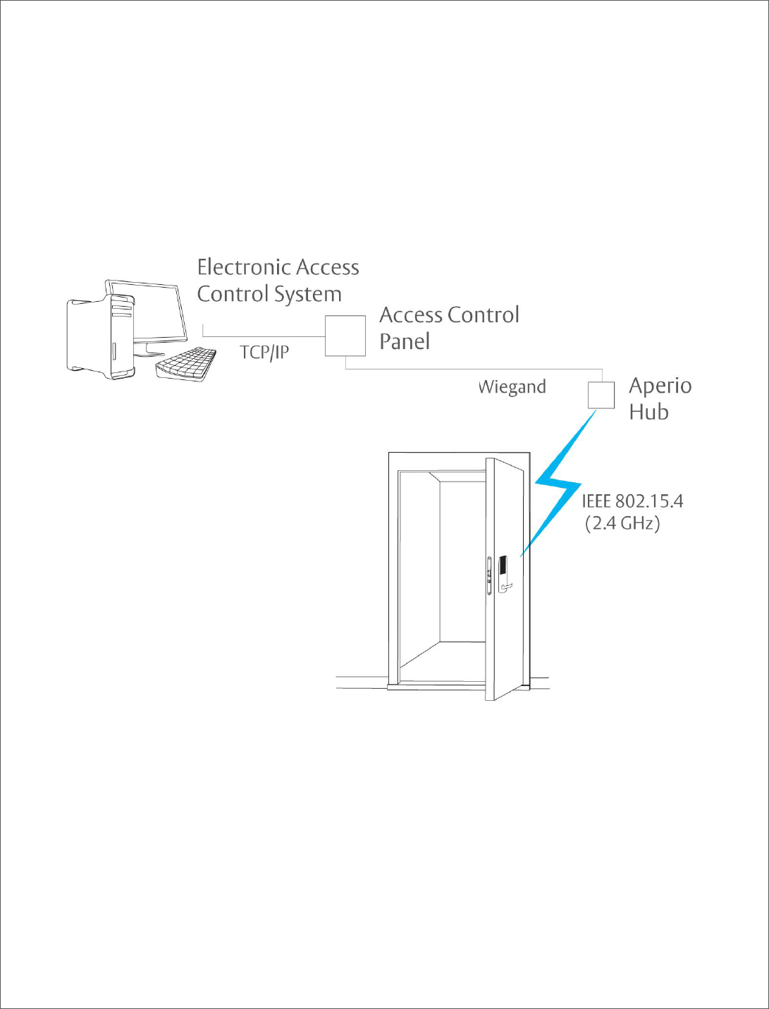 The Aperio Hub connects to the Access Control system via Wiegand wiring. The hub