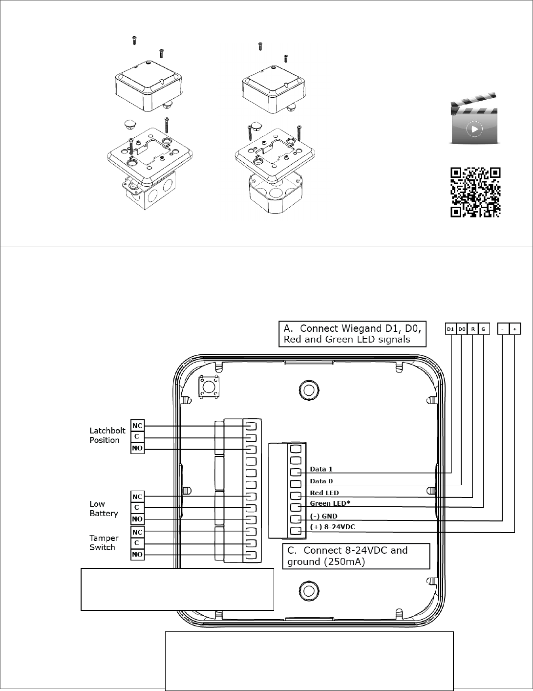 wiegand wiring to the access control system where the decision is made to grant or deny