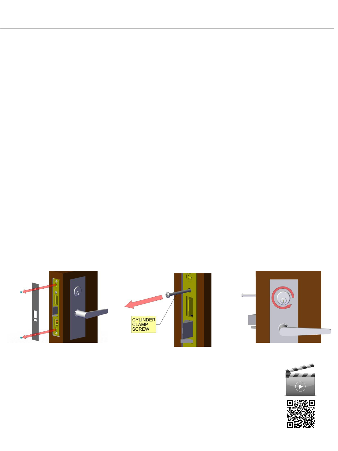 Step 1: The M100 installs in a similar fashion to a mechanical mortise lock, and requires the same