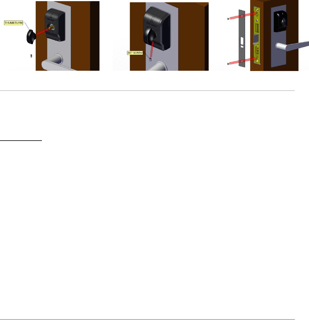 Thumbturn is not out far enough refer to Step 4, Fig. 12.