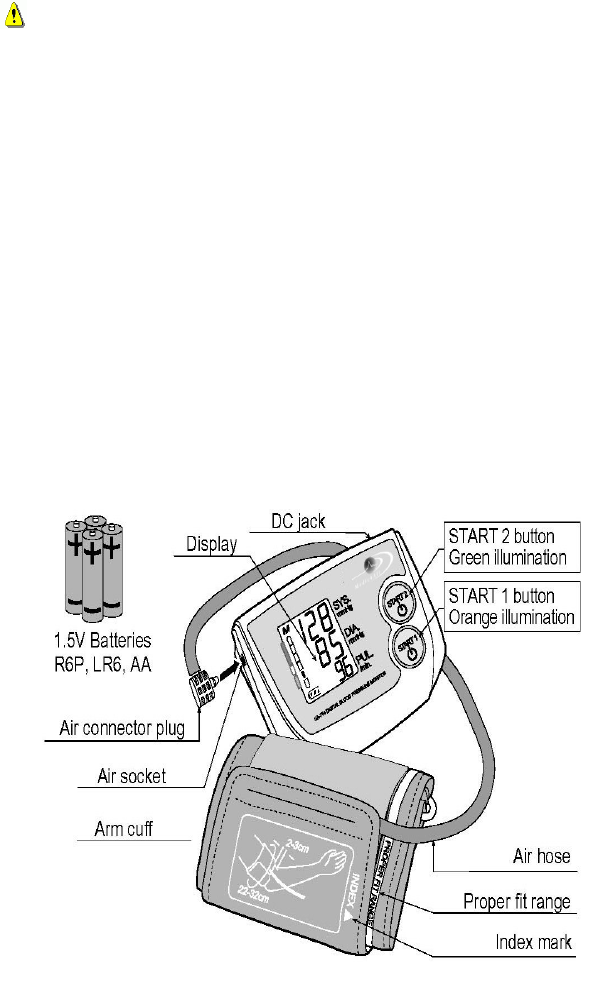 ♦ Avoid any mechanical shock to the Wireless Blood Pressure Monitor such as a harsh