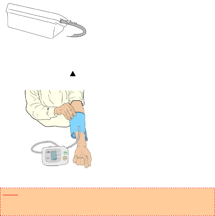 3. Wrap the cuff around the upper arm about 2-3 cm (1 inch) above the elbow, as shown