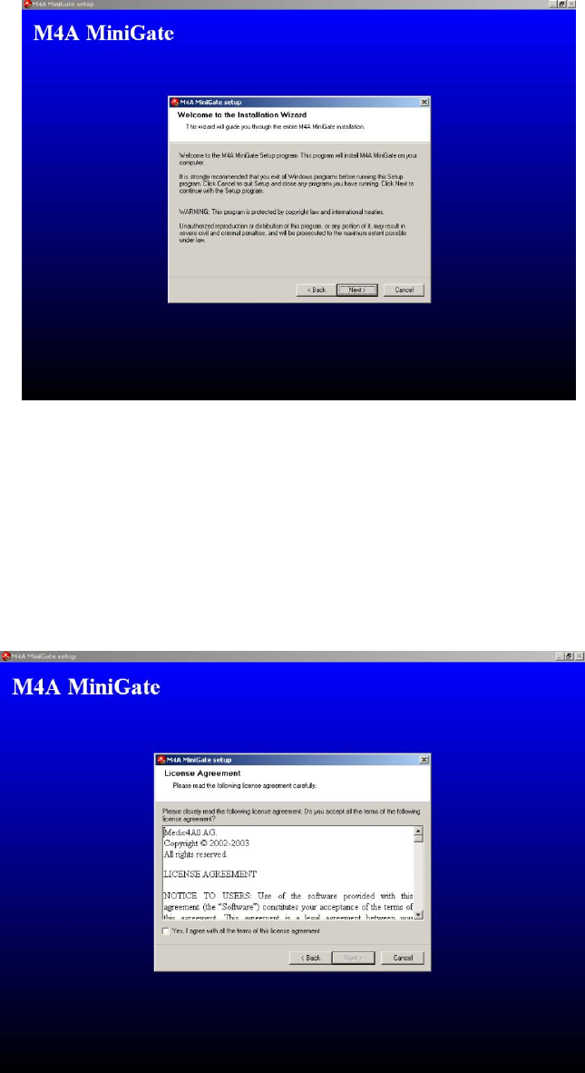 The MiniGate installation is performed by a setup wizard, which provides step-by-