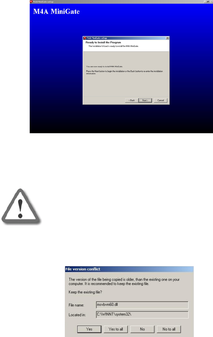 The system opens the following confirmation window: "Your M4A MiniGate
