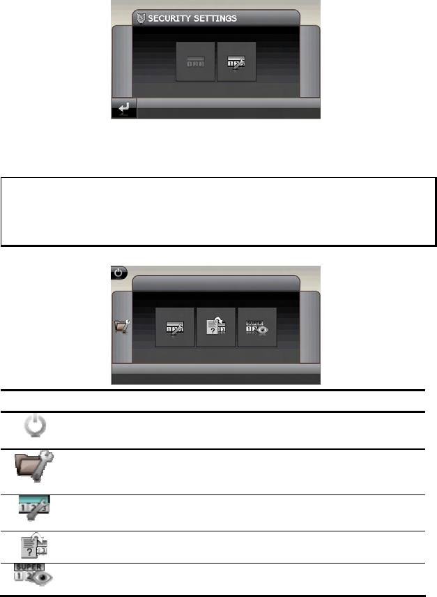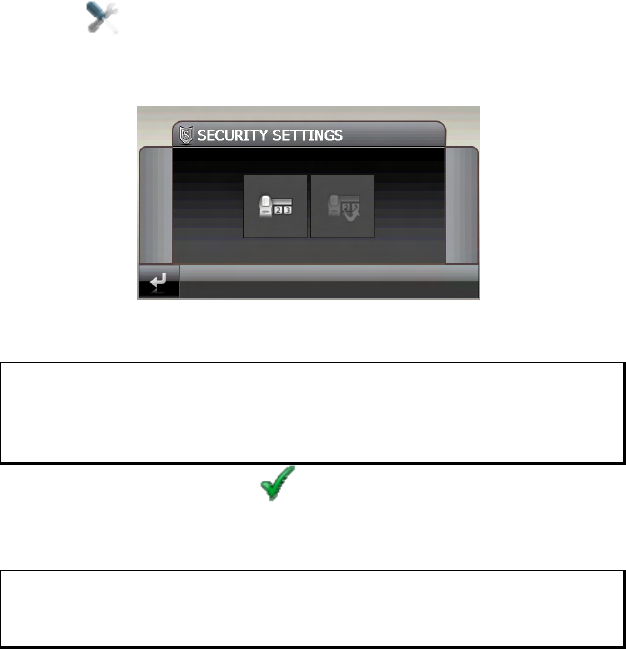You will enter the password and the information note by means of the Security Function.