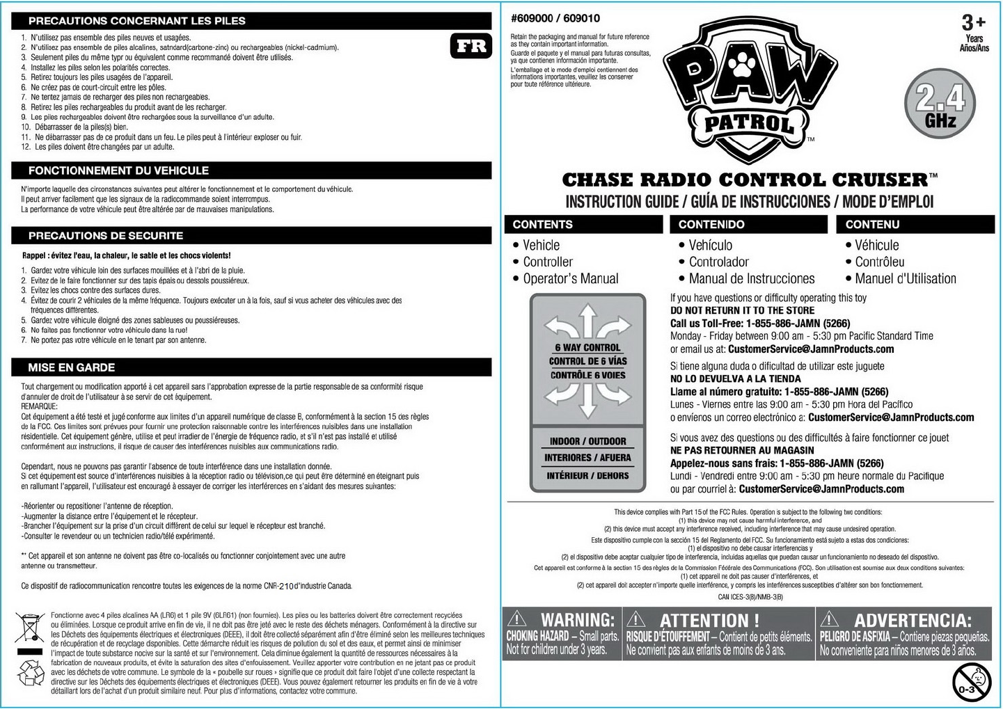 MegaGain 609000-609010 9 inch (2.4G) Full Function RC Vehicle-Chase(609010), Marshell(609020), Marshell(609020), Rubble(609040) User Manual Fin 4698 W CJ001 01 9inRC Chase
