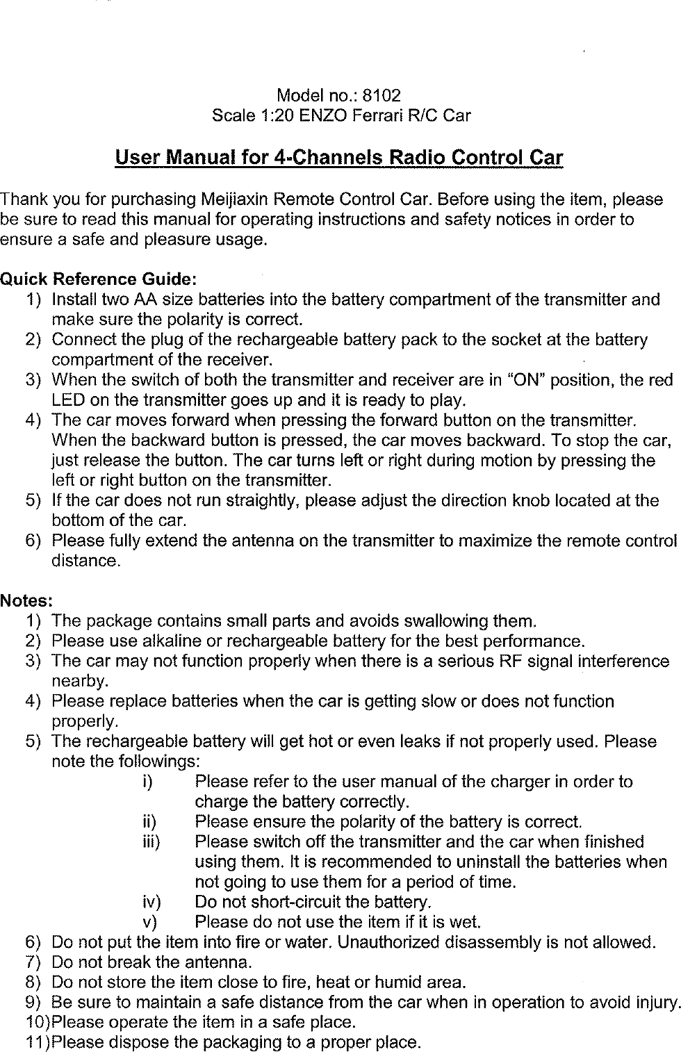 MEIJIAXIN TOYS 8102BRX RC Car User Manual