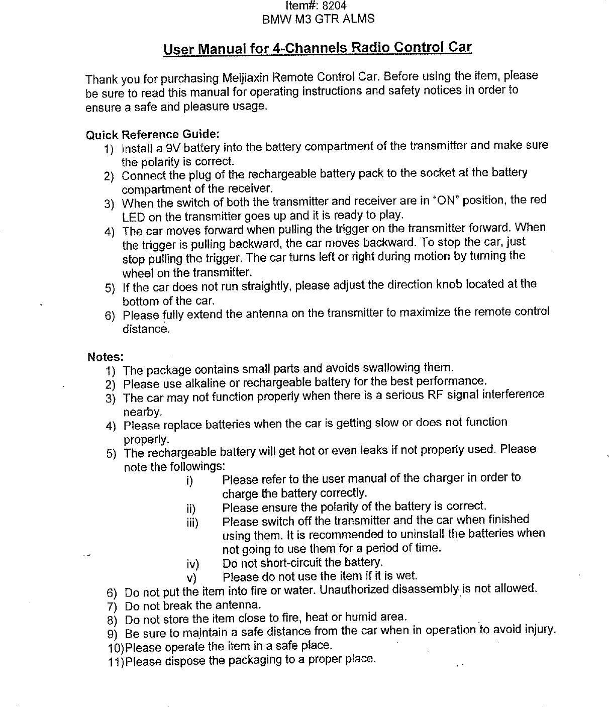MEIJIAXIN TOYS 8204A RC Car User Manual