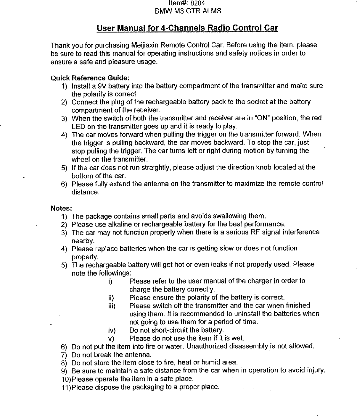 MEIJIAXIN TOYS 8204BRX RC Car User Manual