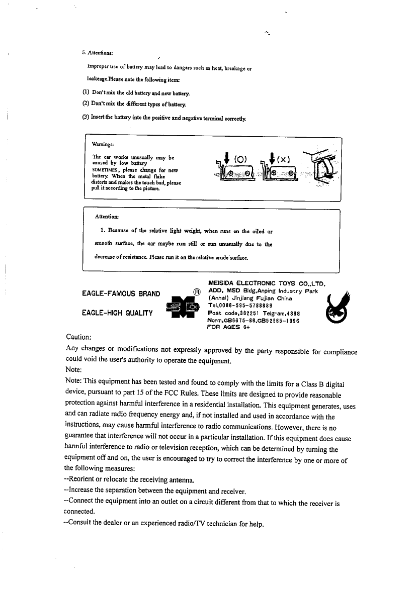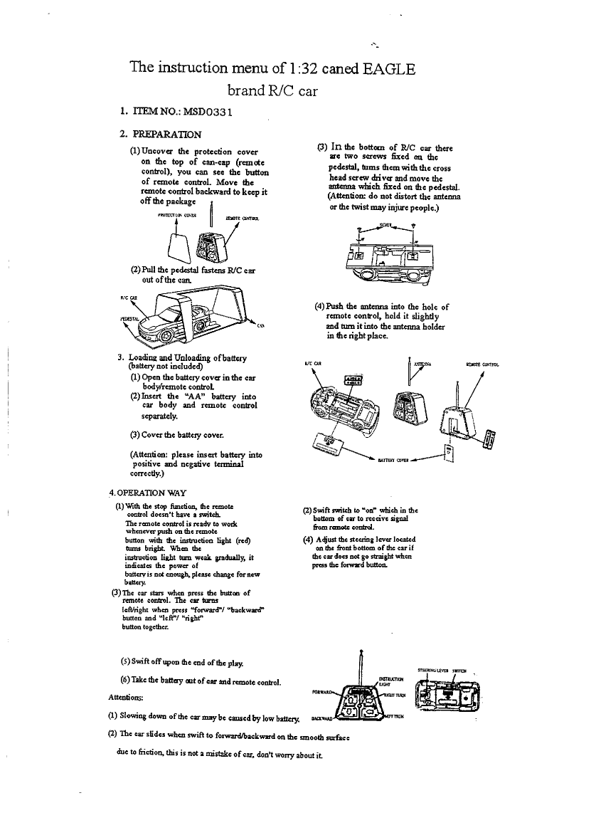 Meisida Electronic Toys MSD03311990 1:32 Scale R/C Nascar Car User Manual job