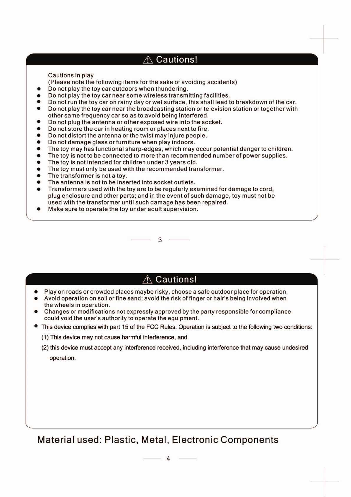 3. Stop using the toy immediately in case any broken. Keep it away from the flammablematerials.
