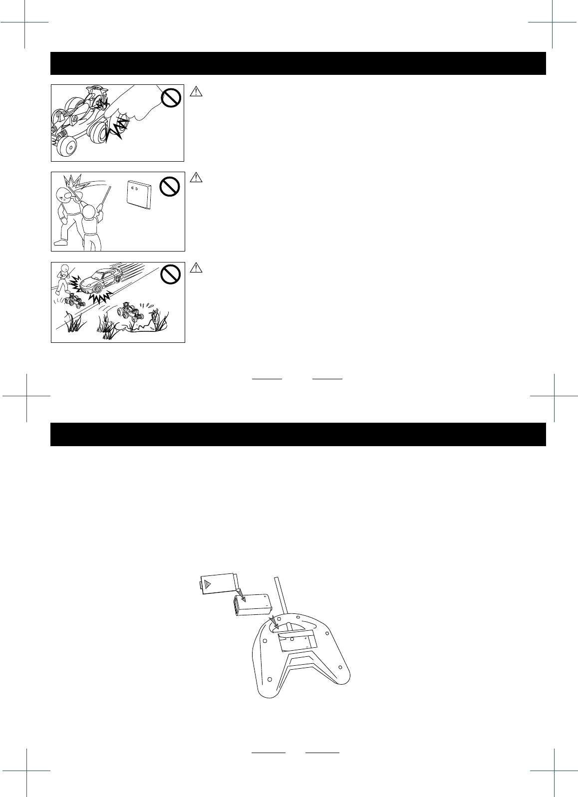 Don't insert finger into the car body and touch the wheels
