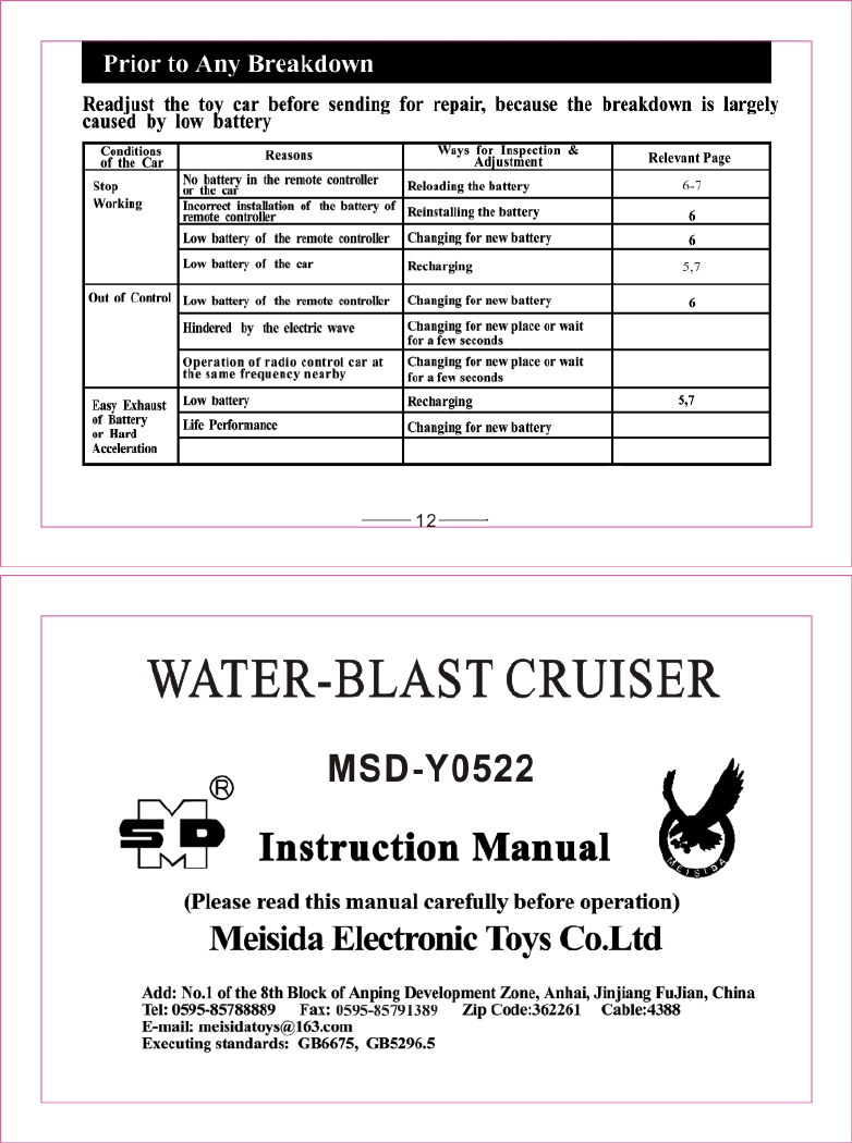 Meisida Electronic Toys MSD05221989 WATER-BLAST CRUISER User Manual